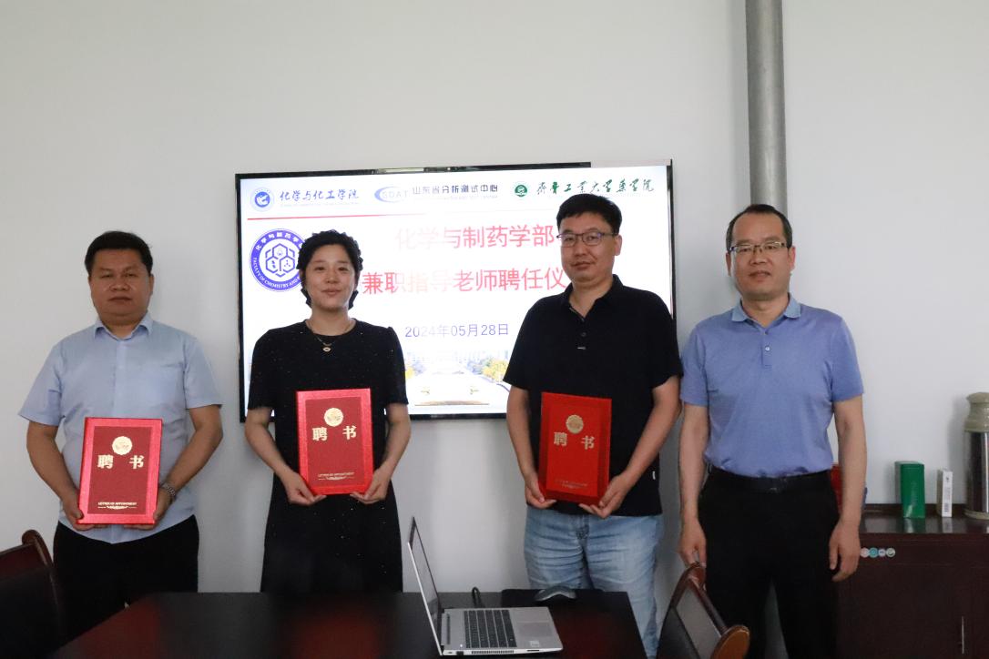 經公司推薦,齊魯工業大學(山東省科學院)化學與制藥學部考察,我單位蔣姝慧、唐桂文、劉強、劉玉成、孫永軍于2024年5月被聘為齊魯工業大學(山東省科學院)化學與制藥學部兼職指導老師,聘期三年,齊魯工業大學(山東省科學院)化學與制藥學部書記尚明、副主任姜海輝、董成穩、王金桂、我公司人力資源部和研發中心出席了聘任儀式。